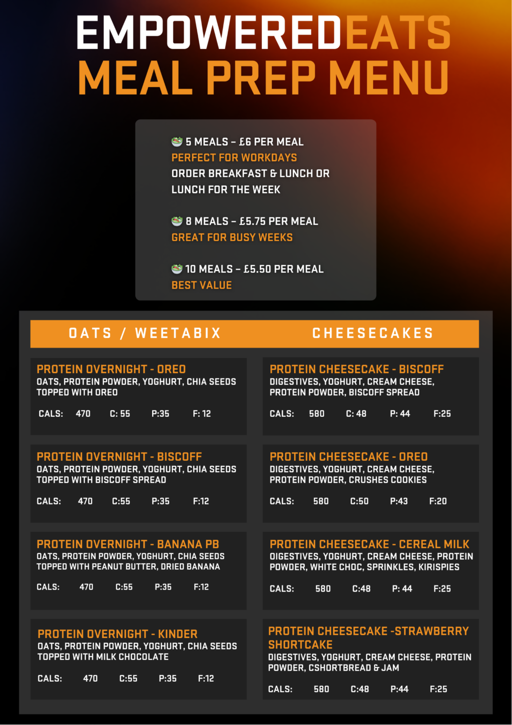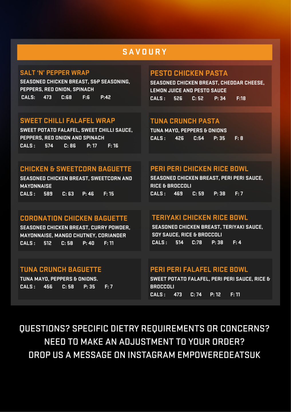 ✔ Calories & macros clearly labelled